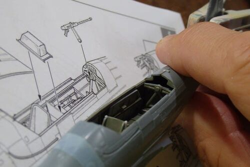 床部分が機体にすんなり収まるか、仮組みしてみました。 後部の7.92mm旋回機銃の支持架は組説通り床に付けると 機体を組み合わせた時に上端に届かなくなります そのため機体を左右合体させた後、上から差し込むようにして52番の部品を接着し これに密着する…