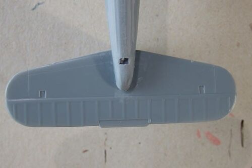 水平尾翼は左右1枚ものです、すんなり収まったので 水平・垂直を確認し、すかさず瞬着で接着して「おーっ順調~」と思ったのですが... あとでよく見てみたら、差し込みが足らず後ろにずれている状態(油汗) やり直しです、分離作業から始めなくてはいけ…