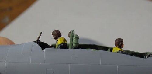 搭乗員を仕上げてシートに接着しました エッチングとレジンで出来たガンサイトを付けて、コックピット内部はお終いです ルイス機銃のドラム弾倉は、この格納位置では付けるとキャノピーと干渉してしまいます 実機写真とも見比べたうえで、無しにしました 写…