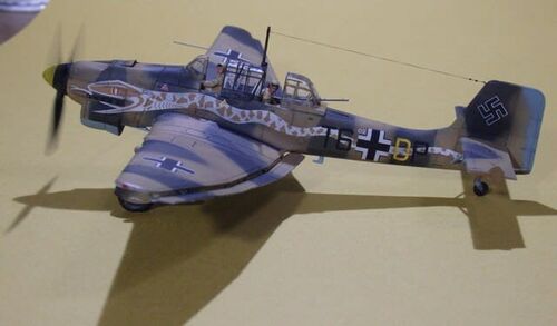 1/72 AIRFIX JU87B-2/R-2 STUKA ”とり完”です スツーカかシュトゥーカか分かりませんけど... パイロットはⅡ,/StG2のフーベルト・ベルツ「少尉」 機体のカラー写真が残っているので、大変参考になりました 一応、ペラ廻しているんですが、真横なもので.…