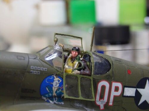 ハセガワのU.S.PILOT/GROUND CREWセットに入っていた酸素マスクを着け シートベルトも座席に固定してパイロットは”完成”です ”とり完”ではありません、ジ・エンド?いやギブアップ、もう無理です(_ _) アップで記念写真、これでこのシリーズお終いにしようか…