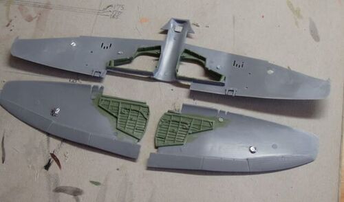 続編です、って(2)だから当たり前か(^^; 主翼のライト部分にミラーフィニッシュを貼り、クリアパーツのガラス部分を入れ込みました 脚収納庫の隔壁も付けています 以前作ったスペシャルホビーのMk.Ⅱの記事を読み返してみたんですけど 脚収納庫全体がレジ…