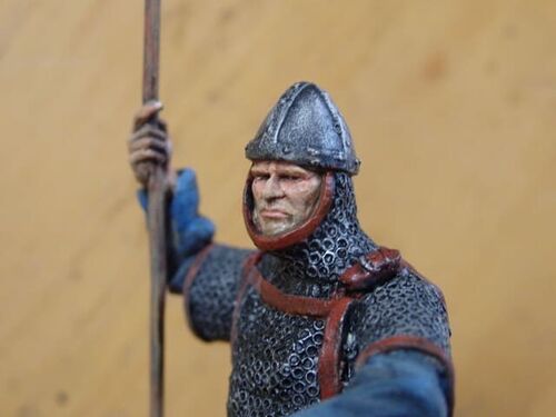 ハイ、とり完しました(^^) 最初からお顔アップです 全体です、この槍を立てて持っているポーズは本当に収まりにくい(-_-;) そこで槍を除いた姿で ちょっと細部をアップしてみました 装具を支えている皮ベルトです 例の夏休みの絵日記に描かれたギャオスの盾…