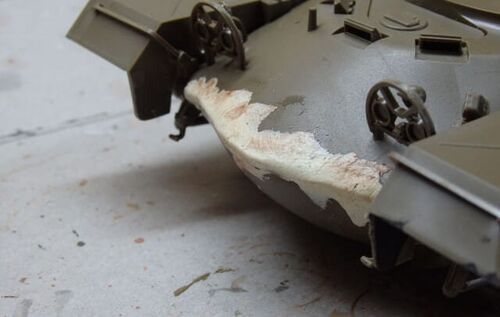 よく考えたら、この【新】の方は完全に一からの製作なので タイトルみたいにリストアではないのですが、まぁ成り行きという事でこのままでいきます(^^; やっぱり気になって、車体前面の縁をタミヤエポパテで盛りました パテは高密度と速硬化を1対1で混ぜた…
