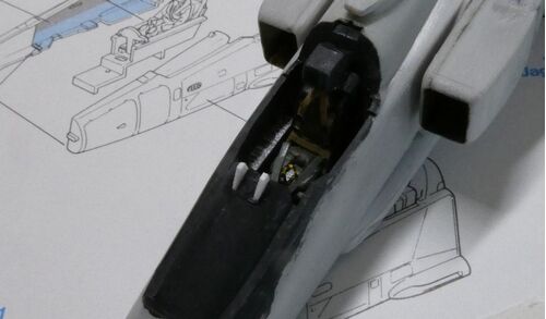 キットのHUDが余りにも簡単すぎるようにみえたので、ちょい改造しました 一旦キットのモールドを削り取り、プラ板の切れ端で再生します 横から見たところ これにキットのHUD用クリアパーツの上側になる角を削って植えました 済みません、これは後から撮り直…