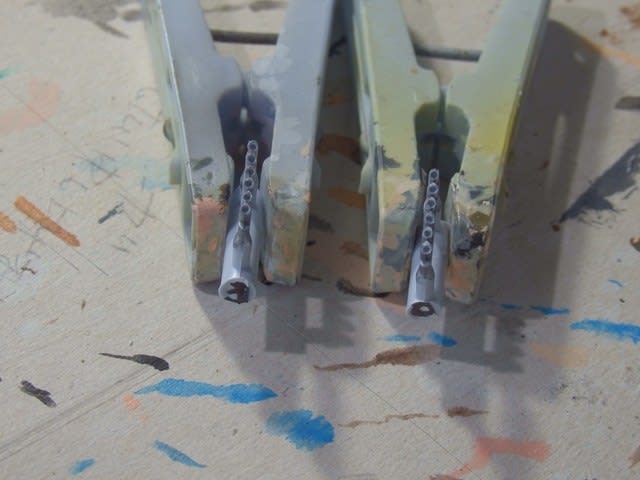 排気管もしっかりピンバイスと、穿孔ツール(刃先を摘まんで手回し)で穴を開けました。