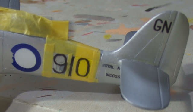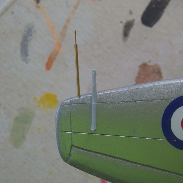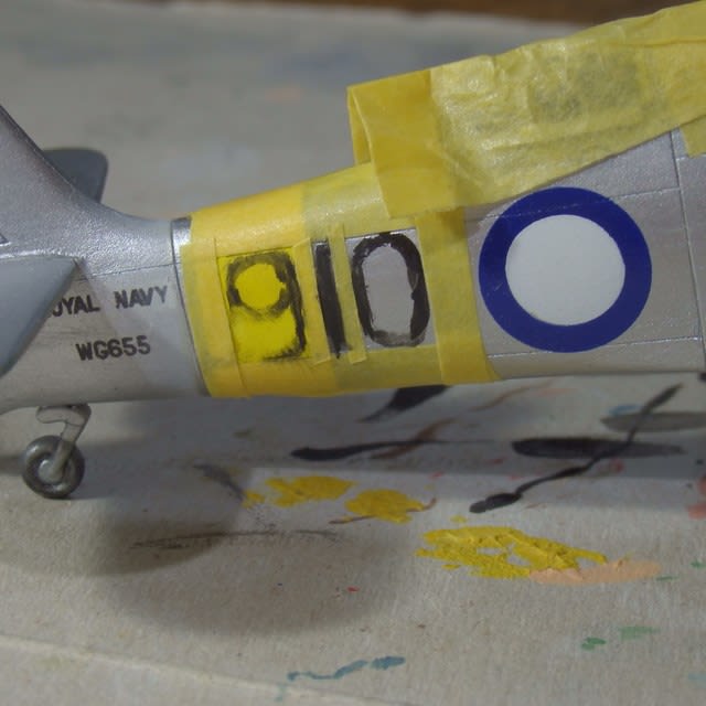 左側面のラウンデルの青欠けも筆でリタッチ、これはNo5ブルー・No328ブルーFS15050の混色です