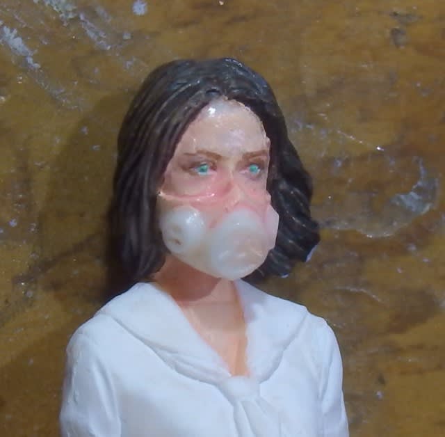 セーラ―服の少女が普通にガスマスクを着用しているというシュールな造形なので、