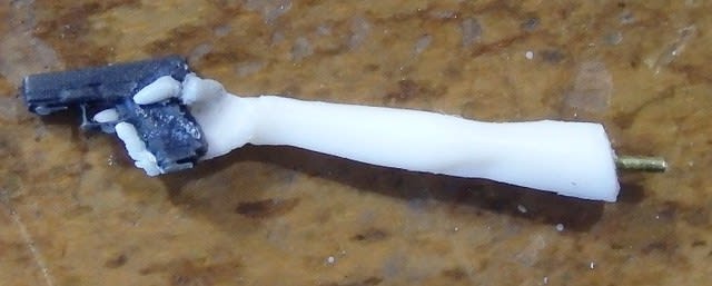親指は失くしてしまい伸ばしランナーで、他はオリジナルの指を線香で暖めて曲げました。