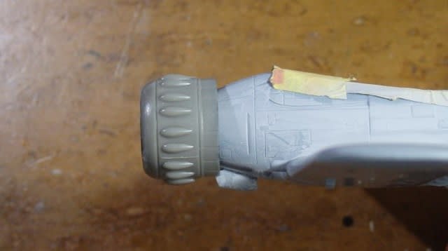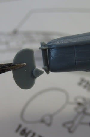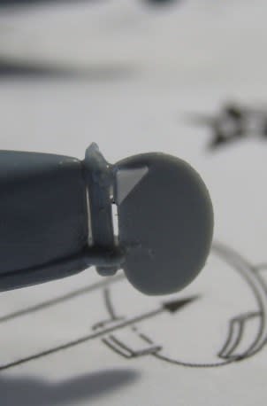 フロート尾部の舵をくっ付けます、ところがここにも邪魔なものが、ここままでは接着出来ません