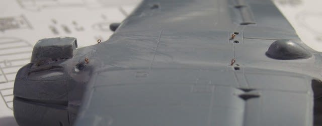 結構厄介な張り線工程、まずヒートンを作って機体とフロートに埋め込みました