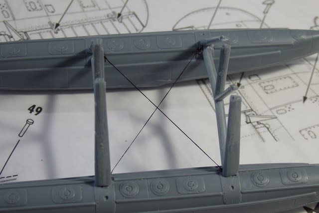 ここは左右のフロートの位置を決めなければ張り線は不可能です(と思いますが)