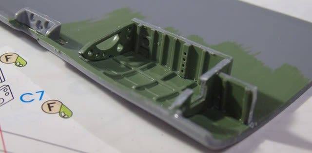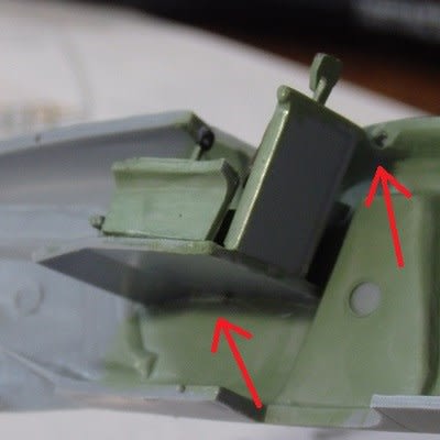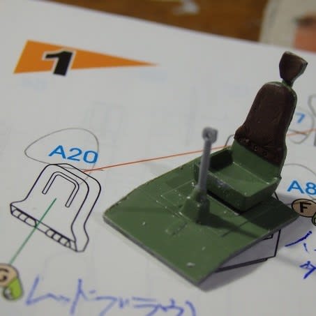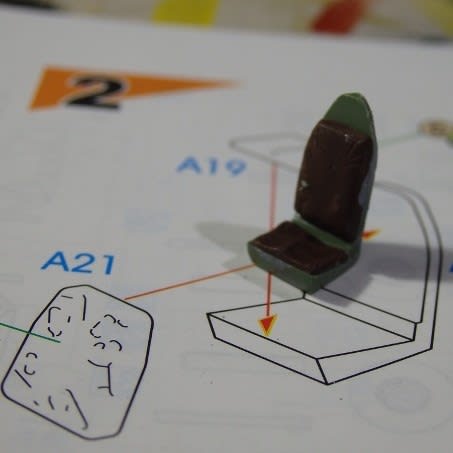 合い具合を確かめるため、パイロットシートの部分を接着せず機体に挟んでみました