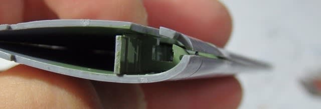 後は内側から付けないとだめなので、先に機体を貼り合わせてしまうと「エライこと」になります(^^;