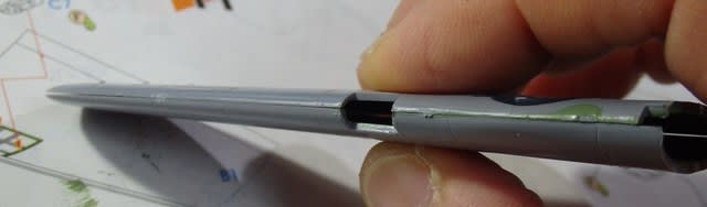 後部は機体面と面一にするため、機体の内側をかなり削りました
