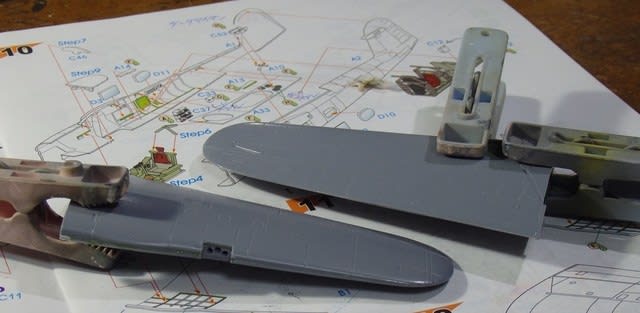 コックピット内はちょっと考えることが有り、先に主翼を組み立てていきます