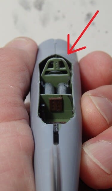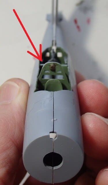 矢印の部分が切った後です、徹底的に胴体と合わなかったなぁ(笑)