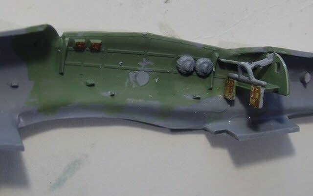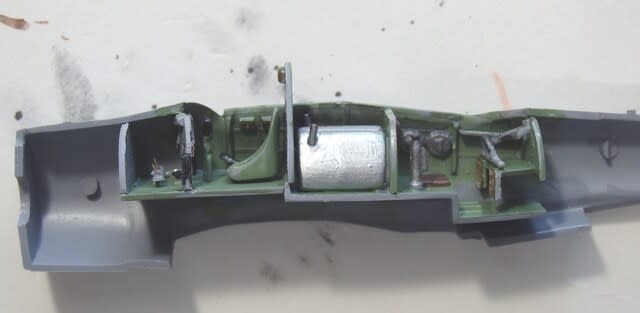 パイロット席と後部銃手席の間にある、燃料タンク?を貼り合わせ床に接着しました