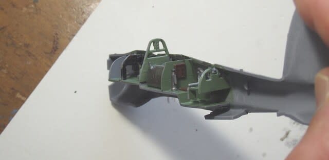 操縦席周りを組み立て、床部分を片側胴体に接着しました
