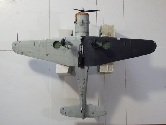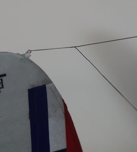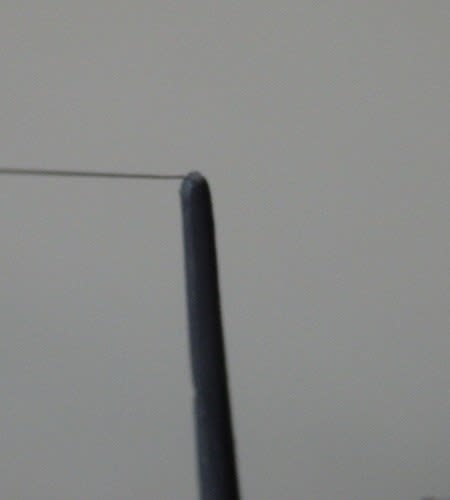 垂直尾翼は0.3㎜ドリルで穴を開け、ヒートンを植え込んで張りました