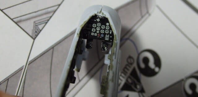 コックピット側壁です、びっしり付いている計器類は一体の別部品です