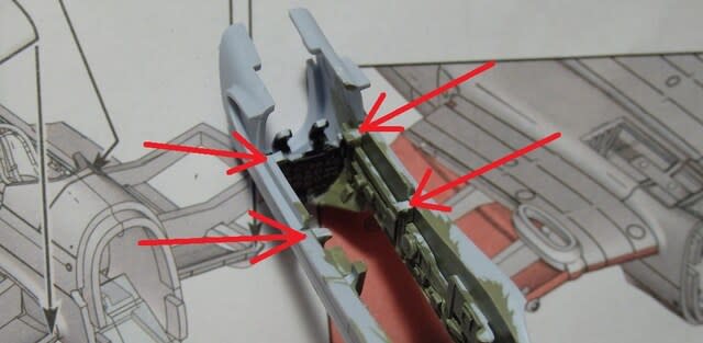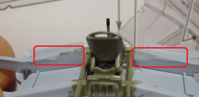原因は側壁に付けたパネル部品の下部と主翼の桁の様です