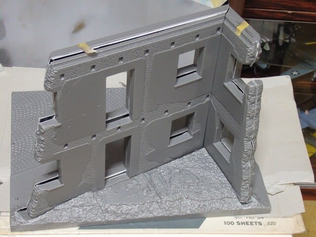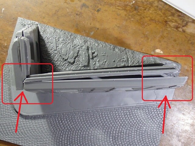 このマジックで書いたラインで切り取り、補強に使ったプラ板などを再利用してコーナーを作りました