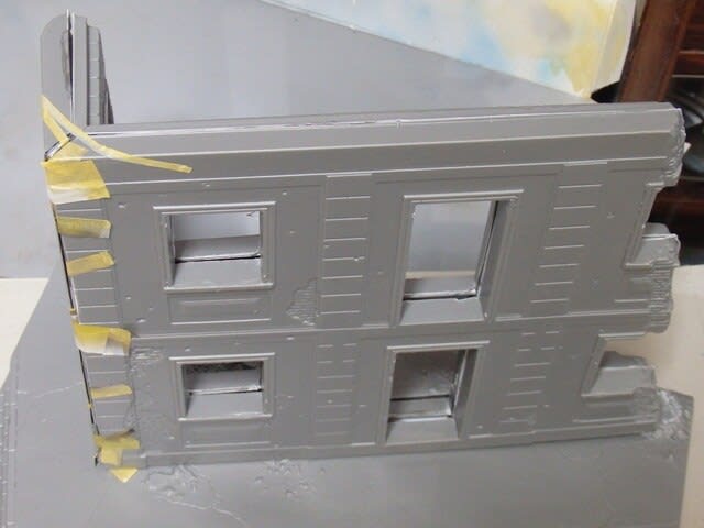 窓枠は1㎜プラ板を7または8㎜幅に切ったもので囲み(高さが不揃いなのです)