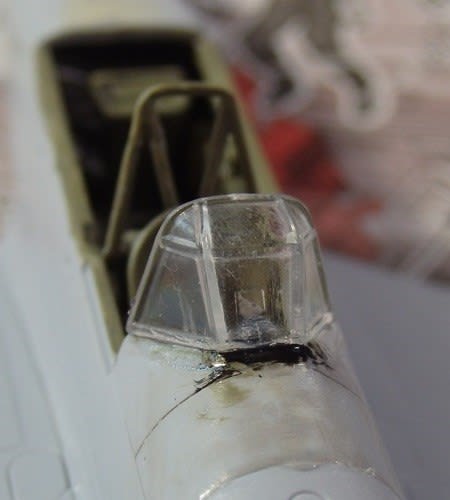 作り始めた頃、風防をランナーから切り離す際にクラックが生じてしまいました