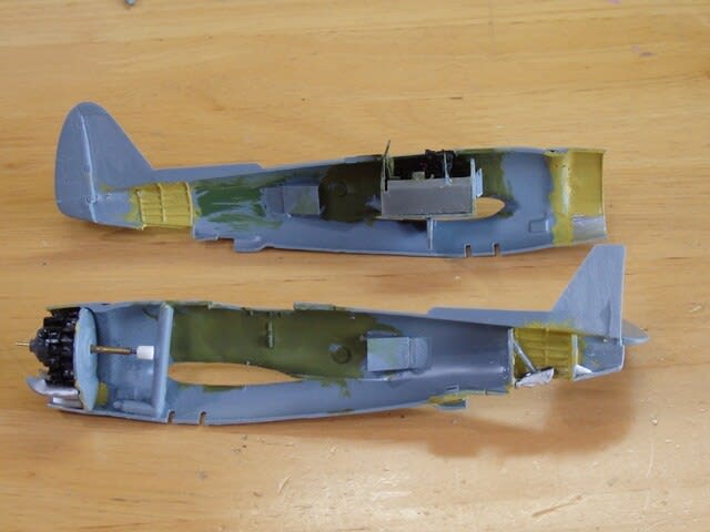 何故かこのキットは、エンジンカウルの部分も左右胴体にくっ付いた形で成型されています