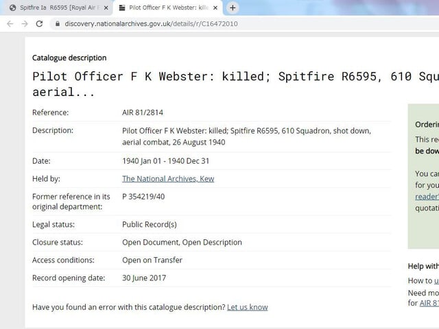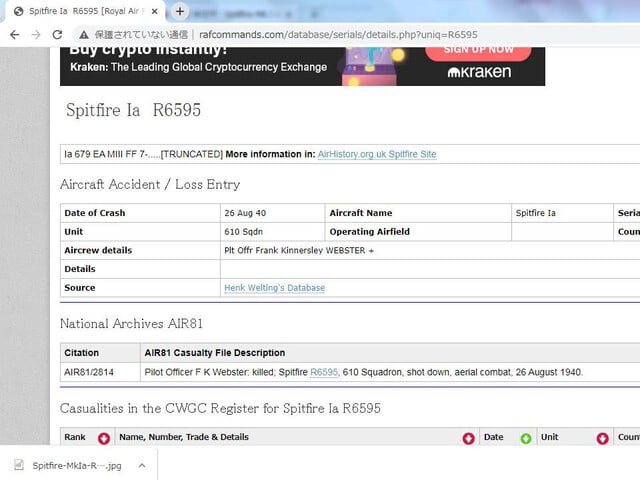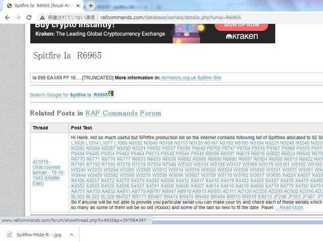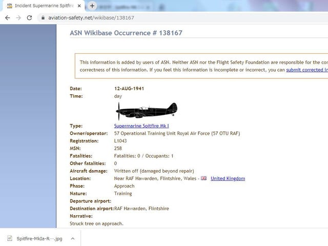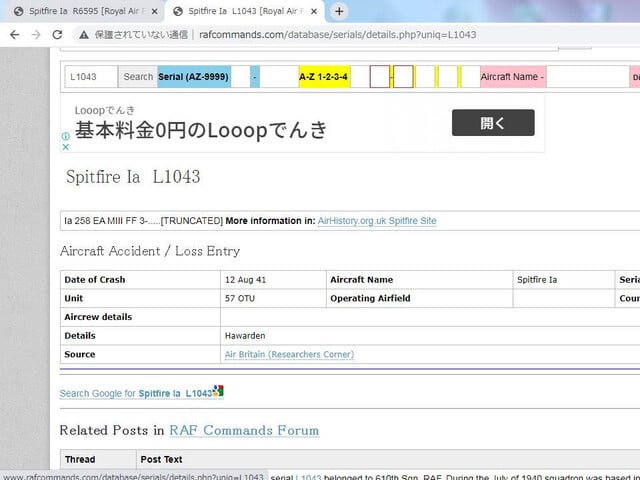 ここに書いてあった”Search Google for Spitfire Ia L1043”で検索してみますと