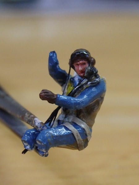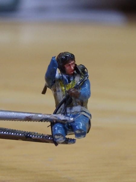 制服の上にライフジャケット、そしてパラシュート、で最後にシートベルトのつもりで工作しました