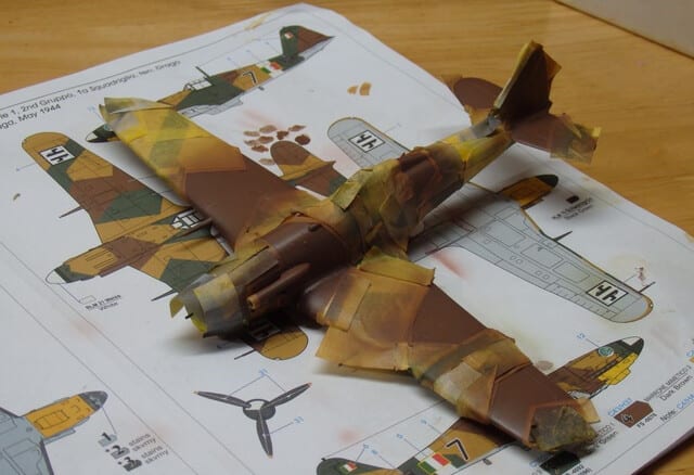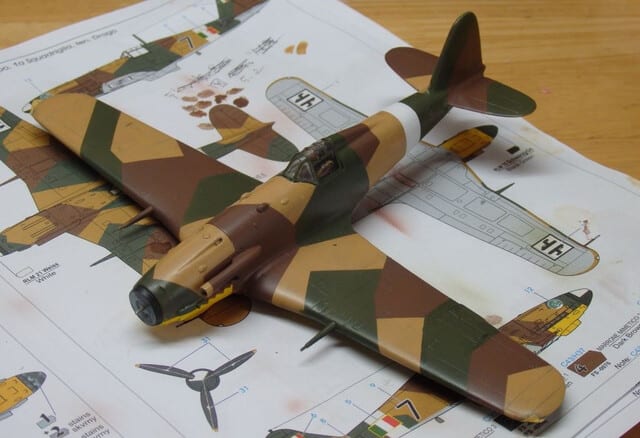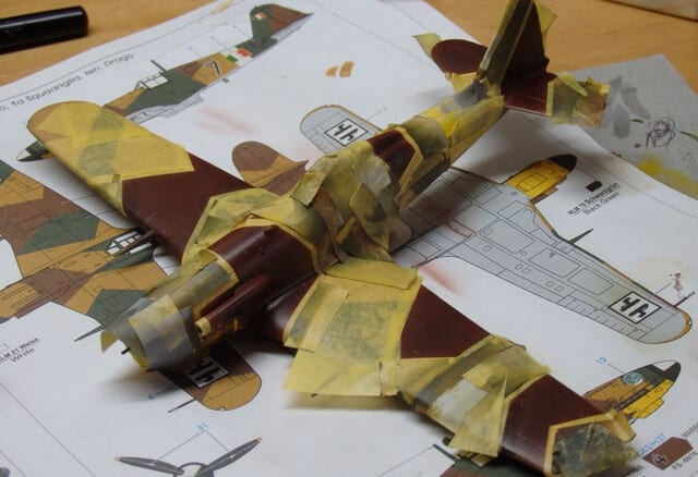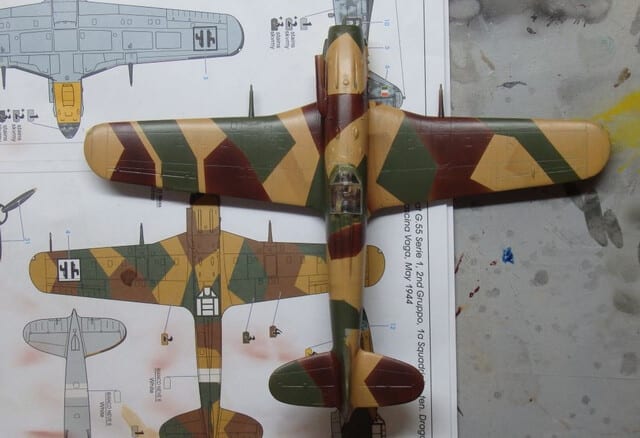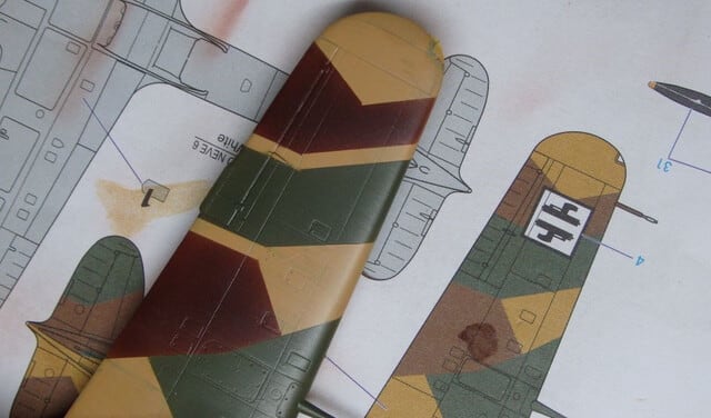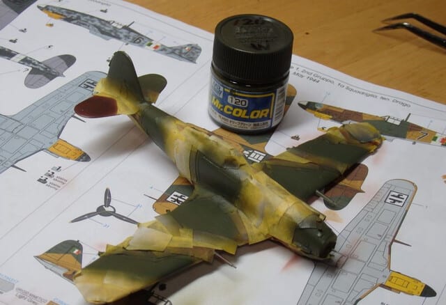 最後の色、No302:ダークグリーンの替りに(持っていないので)No120:RLM60オリーブグリーンを吹きました