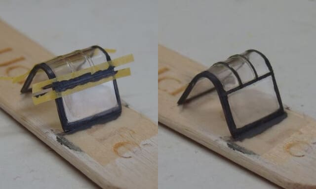 で、オープンする天蓋の窓枠を塗りました