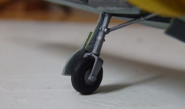 主脚はタイヤを挟み込むような構造になっていますが、これが合わなくて苦労しました