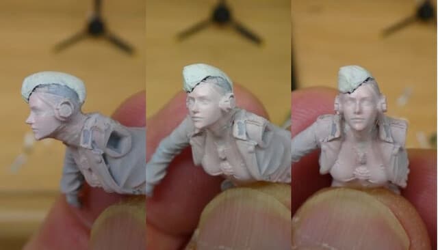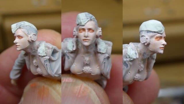 シッフフェンの形を整えながら襟をSSパンツァージャケットにすべくエポパテを盛ります