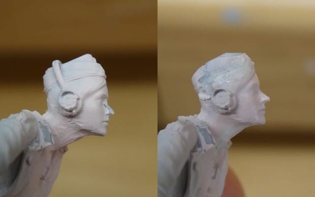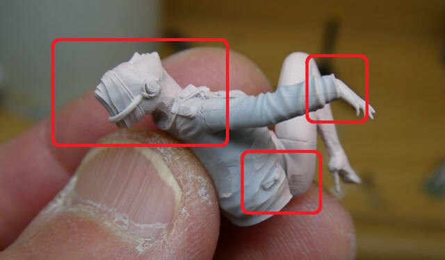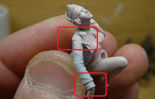 前述した襟の造形、その他邪魔なものも削り取っています