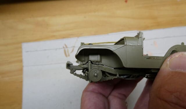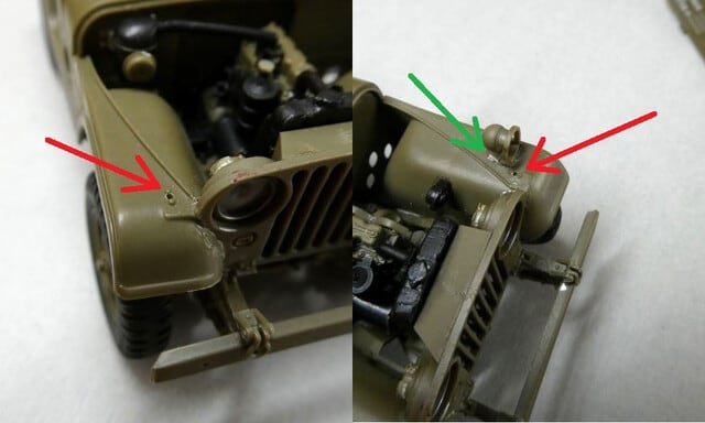 フロントグリルのヘッドライト部分や、フェンダーの受け側を削って無理やりはめ込みましたが
