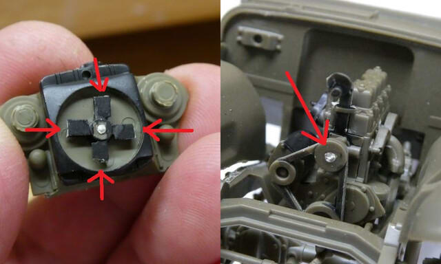 因みに、フロントグリルとシャーシの接合点はこんな感じになります(箱絵)
