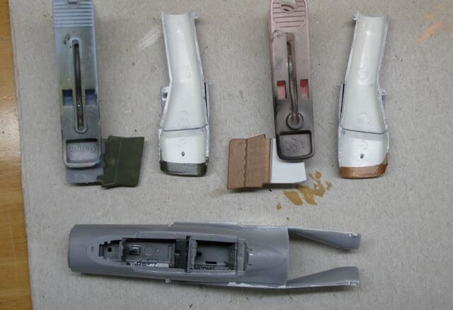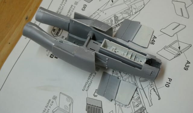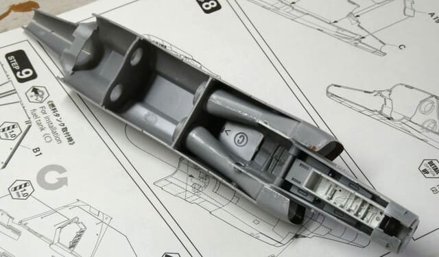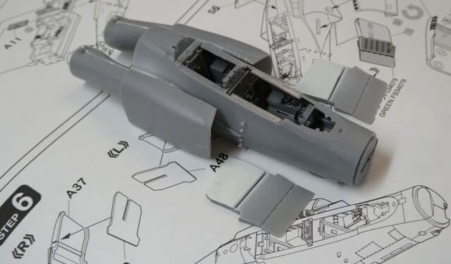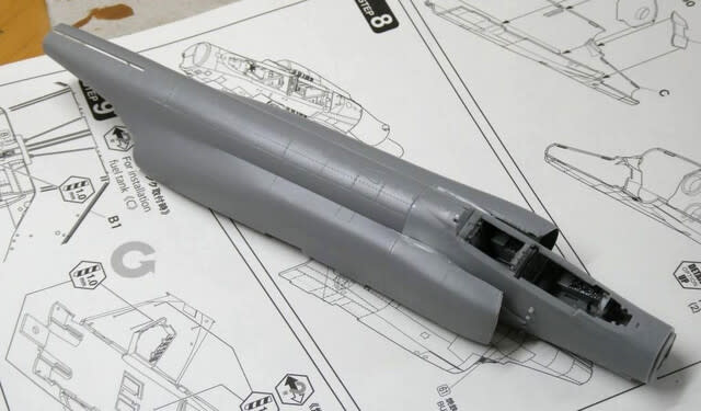 コックピット部の胴体を合体させ、空気取り入れ口を付けます