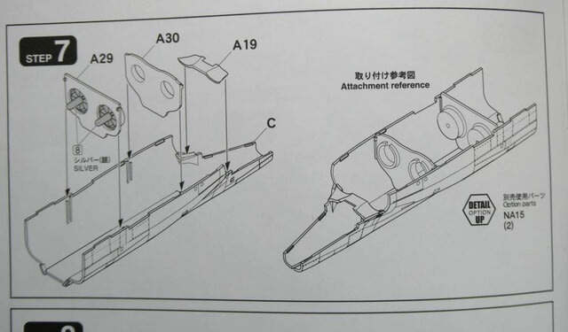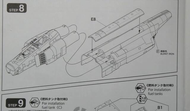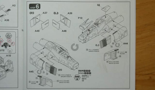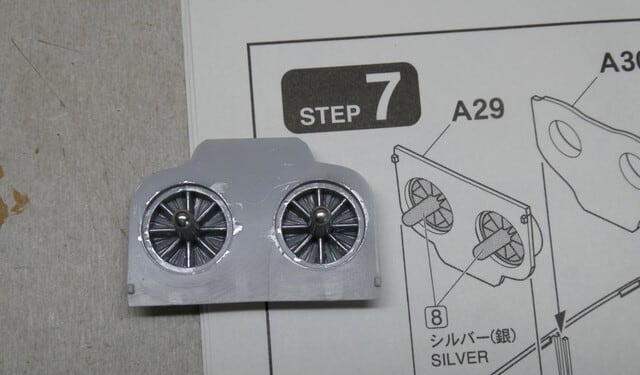 エンジンの前部圧縮ファンはNo8:銀で塗るようになっています