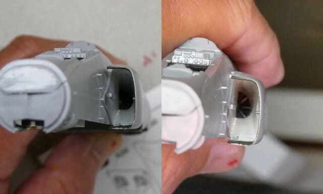 空気取り入れ口の内側に迷彩色が回り込んでいるのですが、ここを塗装せずくっ付けていましたァ~