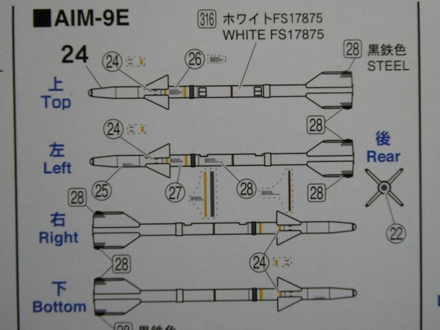 後でよく見たら箱絵にはAIM-9Jが描かれており、このJ型でないとAN/ALQ-101 ECMポッドが付かないようです