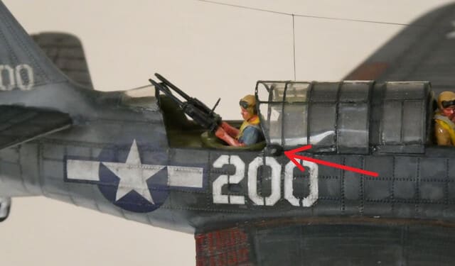 胴体側の引き込みは左側面に0.4mmドリルで穴を開け、ブラックリギングを植え込みました