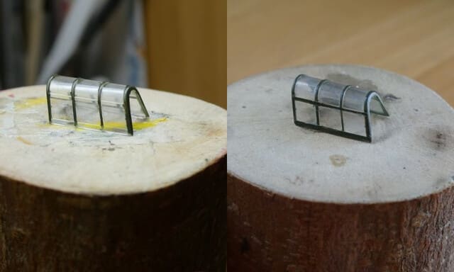 ただ脚柱の突起に突っ込むだけの形なので、フラットな面に置き調整しながら接着しなければなりません