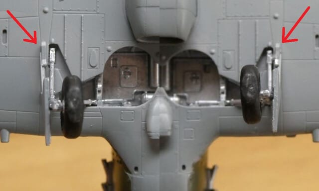 それにタイヤ自体もちょっと見え過ぎ、もうちょっと沈んで脚カバーにホイールが隠れないといけないのでは?