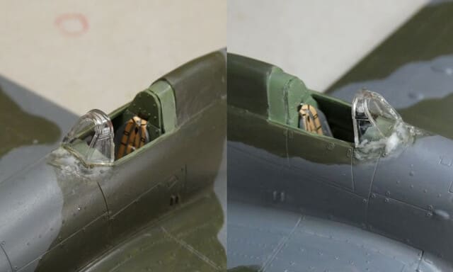 実は第一風防の合いが悪く、削ってはみたのですが機体のカーブと合わず