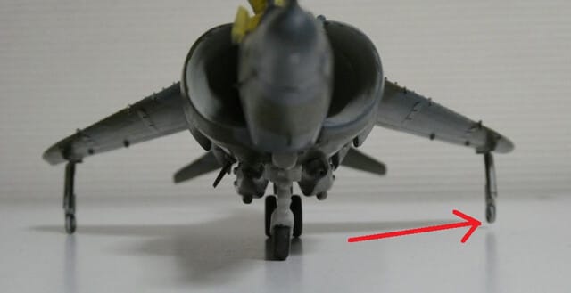 主翼端の補助脚を取り付けたのですが、この場に至って片方が浮いてしまいました(;'∀')