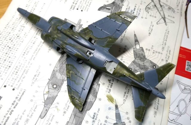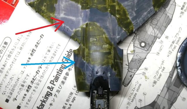 消えた迷彩の塗り分けラインを再度、極細面相筆で描き直し